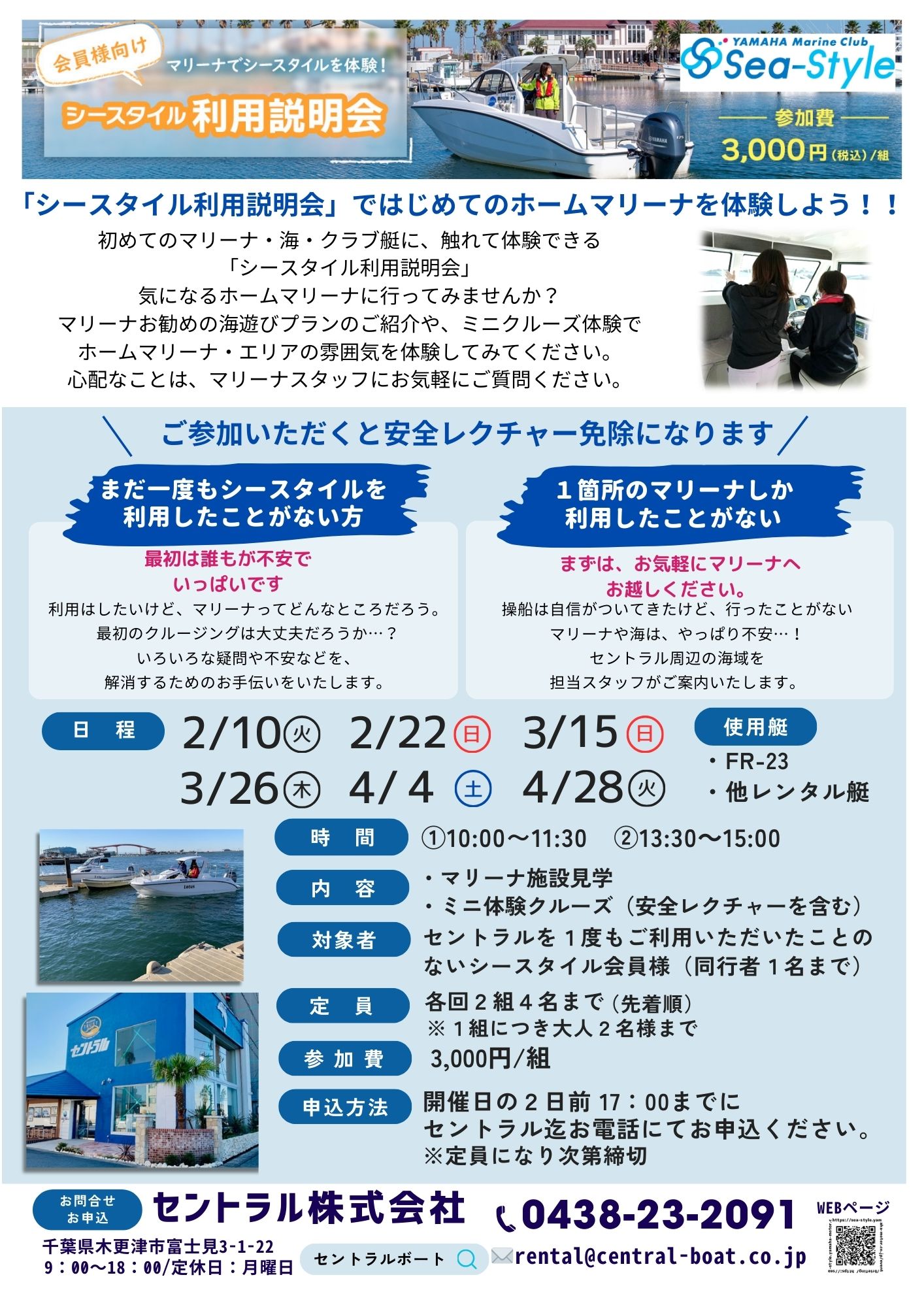 ・4 / 4 (土) ①10:00~11:30(空きあり) ②13:30~15:00(空きあり)